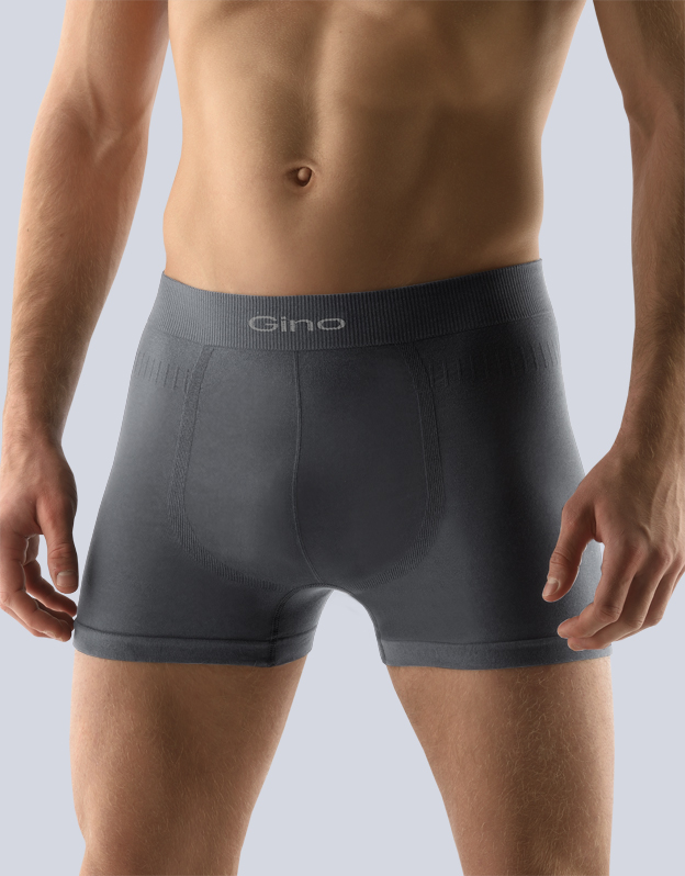 Boxerky s dlhšou nohavičkou, pánske bezšvové prádlo. Pásový kraj je zosilnený a zapravený bezšvovým spôsobom. Nohavičky sú zapravené bezšvovým spôsobom. V rozkroku je všitý klin. Na prednom diele sú boxerky tvarované vypletenými zónami. Boxerky sú jednofarebné. V záložke je vypletené logo v šedej farbe.