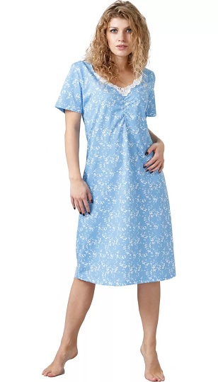 dámska nočná košeľa s krátkym rukávom s pohodlným nariasením v oblasti hrudníka vyrobená zo 100% bavlneného úpletu, jemného a príjemného na dotyk